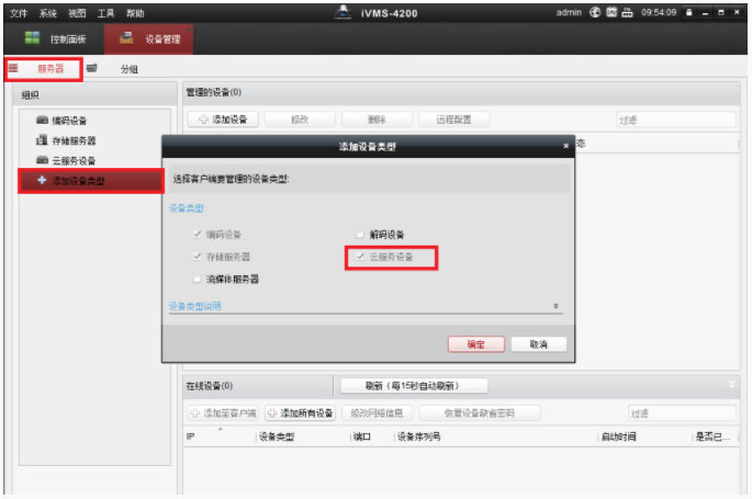 b. 進入“設備管理”界面后,選擇“服務器”,使用鼠標左鍵單擊“添加設備類型”,