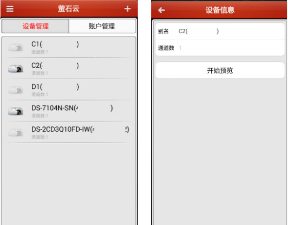 先登錄螢石云賬戶,然后選擇想要預覽的設備進行查看視頻。